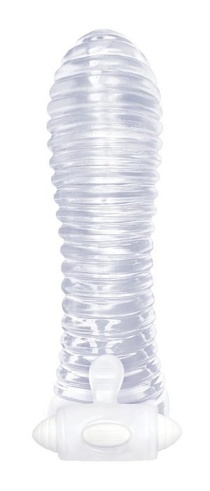The Nines Vibrating Sextenders Ribbed from Icon Brands. These cool looking extenders come in three unique styles, and each is a generous 5.5 inches long. In a sexy smokey gray, they swirl, nub, rib and more, and add size and sensation to sex, at a sensati